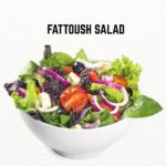 Lettuce, Cucumber, Tomato, Peppers, Sliced Onions with Salad dressing and Crushed feta chees(olives as per your choice)